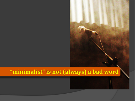 Like my fellow tutors, I underwent a great deal of training – our writing center requires its tutors to take a full-semester class with an observation component – and in that class, we are of course introduced to a whole range of tutoring styles and theories. The intention was to give us the range of options and tools. Our instructor and center director was really specific about only one thing he wanted in the center: “I don’t like minimalism.” So what happened in my first semester tutoring?